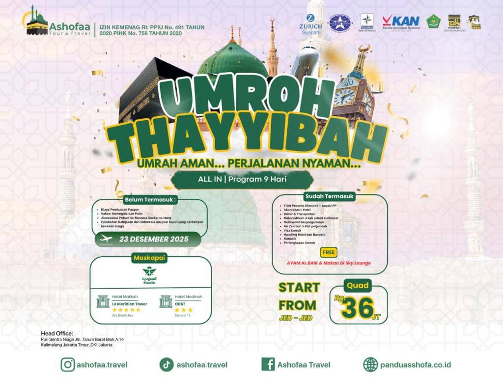 - Jika jamaah tidak bekenan berangkat pada jadwal yang telah ditentukan maka Travel mengembalikan biaya umroh kepada jamaah diluar biaya pendaftaran dan pengurusan dokumen serta perlengkapan yang telah dikeluarkan.